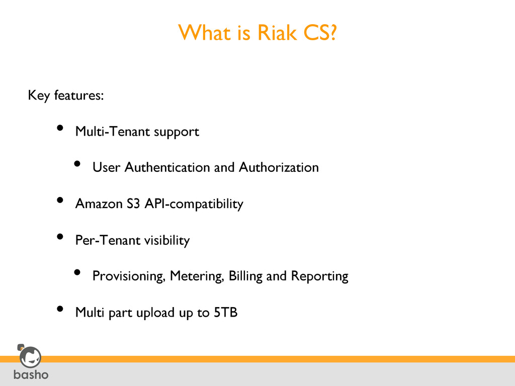 User Authentication and Authorization • Amazon S3 API-compatibility • Per-Tenant visibility • Provisioning, Metering, Billing and Reporting • Multi part upload up to 5TB