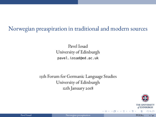 I Icelandic: by far the best known and most studied Phonetic studies: Stefán Einarsson (1927), Sveinn Bergsveinsson (1941), Magnús Pétursson (1976), Löfqvist & Yoshioka (1981), Pind (1986), Ní Chasaide (1986), Þorsteinn G. Indriðason et al. (1990), Pétur Helgason (2002) Phonological studies: Haugen (1958), Höskuldur Thráinsson (1978), Kristján Árnason (1980, 1986, 2011), Jóhannes G. Jónsson (1994), Ringen (1999), Morén (2001), Gunnar Ólafur Hansson (2003), Gouskova (2004), Lodge (2007) Faroese: Jakobsen (1886), Lockwood (1955), Werner (1963), Zachariasen (1968), Pétur Helgason (2002), Gunnar Ólafur Hansson (2003), Höskuldur Thráinsson et al. (2012), Casserly (2012) Scottish Gaelic: Marstrander (1932), Wagner (1964), Borgstrøm (1974), Ó Baoill (1980), Ó Murchú (1985), Ní Chasaide & Ó Dochartaigh (1984), Ní Chasaide (1986), Bosch (2006), Ó Maolalaigh (2010) The Sámi languages: Engstrand (1987), Sammallahti (1977, 1998), Rießler (2008), Kusmenko (2008), Rießler & Wilbur (2007), Wilbur (2014) Pavel Iosad Norwegian preaspiration FGLS13 5 / 41