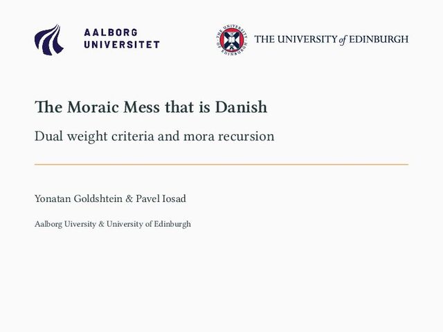 Focus on accounting for the presence/absence of stød (Basbøll 2003, 2005). Phonotactic generalizations and vowel length alternations are unaccounted for. The Stress-to-Weight Model Focus on accounting for phonotactics and length alternations (Vazquéz-Larruscaín 2021). Restrictions on stød not accounted for in terms of weight. Dual criteria for syllable weight Main insights from the other models are accounted for in one model of syllable weight employing: • Recursion • (Morphophonological stratificaton) 4