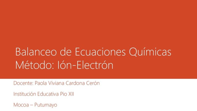En la siguiente presentación encontrarás en que consiste el método de balanceo de ecuaciones químicas, ion electrón, además el paso a paso a seguir para aprender hacerlo en medio ácido y en medio básico; al final hay unos ejercicios propuestos.