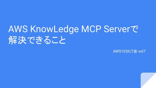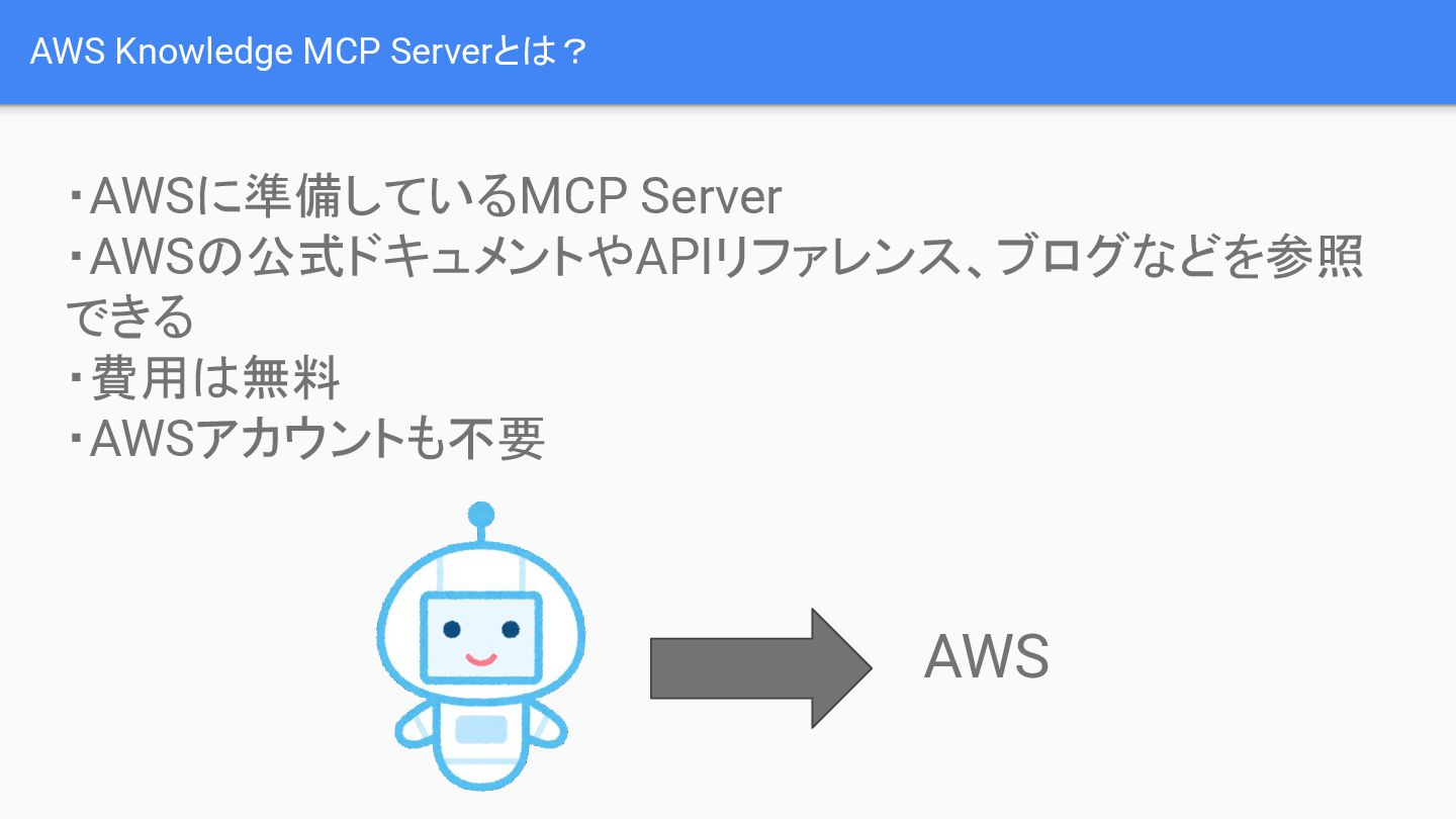 これらの課題を解決する手段として紹介されるのが「AWS Knowledge MCP Server」です。