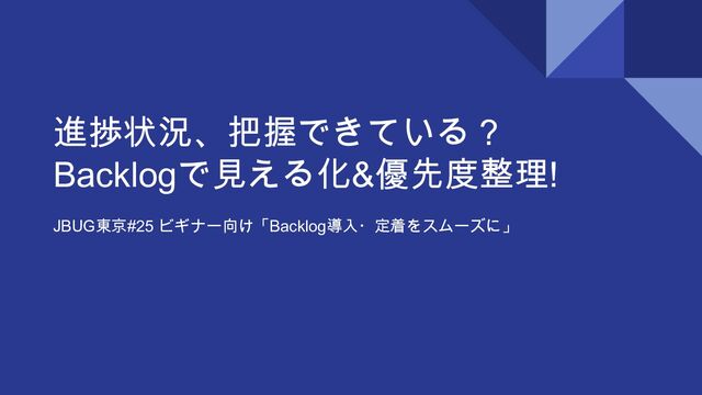 進捗状況、把握できている? Backlogで見える化&優先度整理! JBUG東京#25 ビギナー向け「Backlog導入・定着をスムーズに」