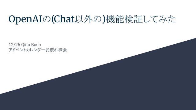 この資料は、OpenAIのChat以外の機能の検証についてまとめられたプレゼンテーションです。