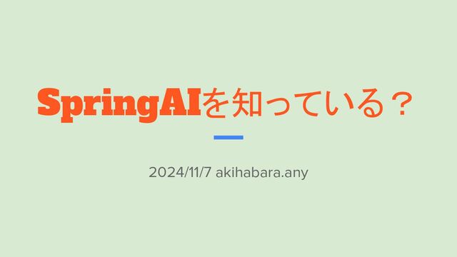 このプレゼンテーションは「SpringAIを知っている?」というテーマで、Spring AIの概要、利用する利点、不足点、そしてまとめについて解説しています。