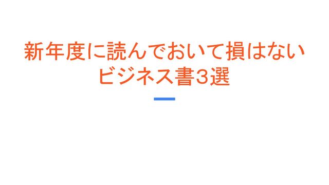 この資料は、新年度に向けて読んでおくと良いビジネス書3冊を紹介するプレゼンテーションからの抜粋です。プレゼンテーションは4月から新年度を迎え、環境が変わる人も多い中で、新しい環境で役立つ3冊の本を紹介しています。
