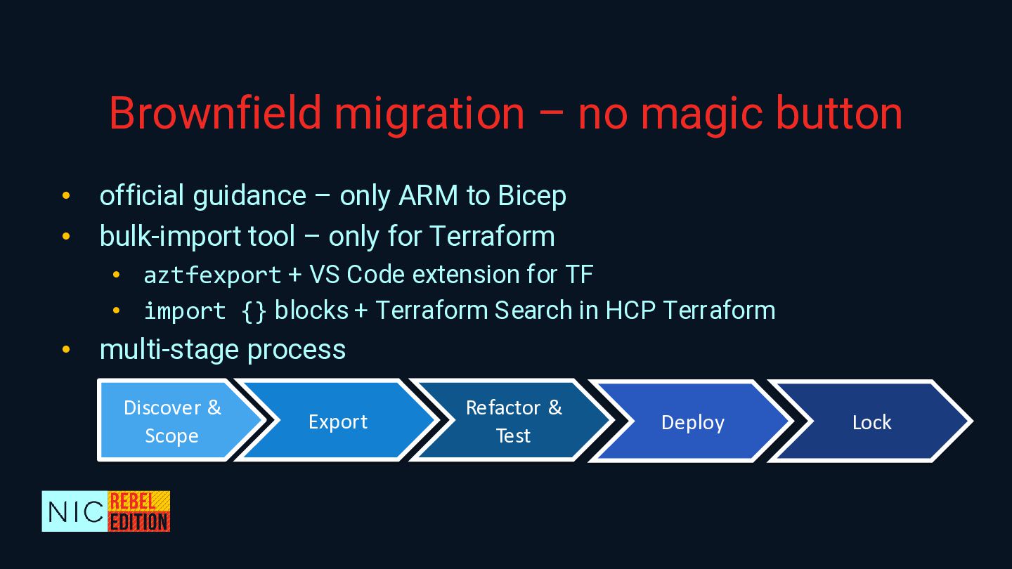 Are you still managing your Azure infrastructure through the portal? It’s time to shift from ClickOps to GitOps and embrace Infrastructure as Code for scalable, secure, and collaborative cloud operations. It's quite easy to start from scratch (greenfield) but how about that existing environment (brownfield)?