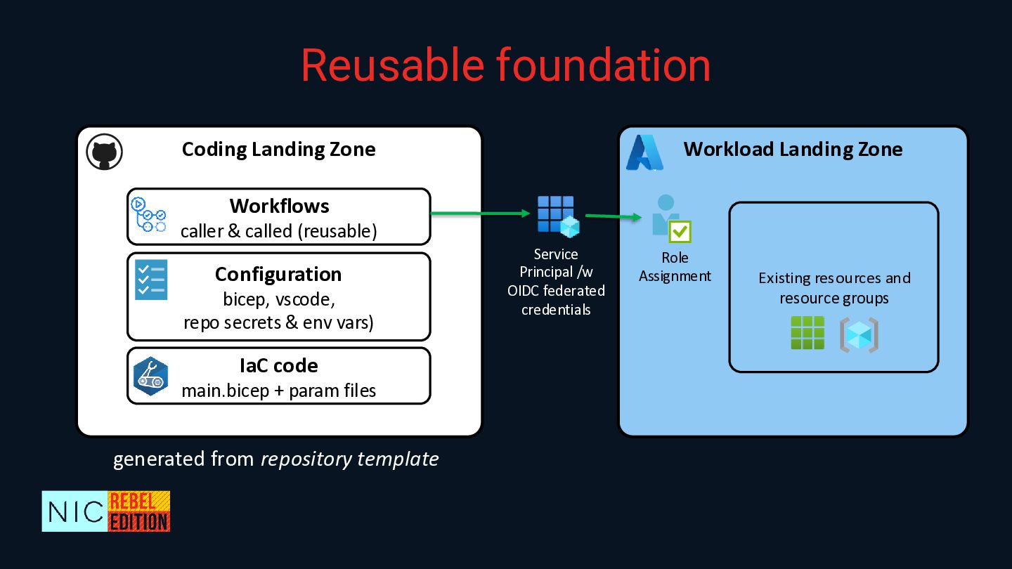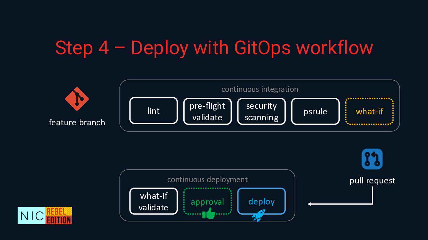 The entire process will be demonstrated using Bicep and GitHub, but this knowledge could be transferable to other DSLs and collaboration platforms.