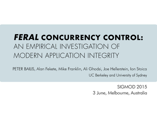 Paper URL: http://www.bailis.org/papers/feral-sigmod2015.pdf