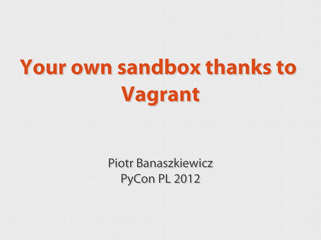 control systems? What about SSH keys etc? Solution: use shared folders. $ cat Vagrantfile ... config.vm.share_folder "project", "/home/vagrant/project", "../project" ... config.vm.share_folder "dep", "/dep", "../../dep/", :owner => "vagrant", :group => "vagrant" ... # HACK for virtualenv VirtualBox > 4.1.8: allow for symlinks → config.vm.customize ["setextradata", :id, "VBoxInternal2/SharedFoldersEnableSymlinksCreate/SHARE_NAME", "1"] ...