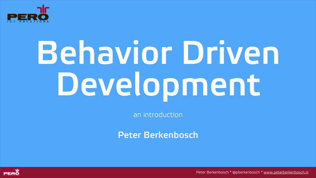 Peter Berkenbosch * @pberkenbosch * www.peterberkenbosch.nl Behavior Driven Development an