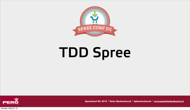 SpreeConf 2013 DC with true title: "Component Based, Outside In, Spree Development using Behavior-, Test- and Documentation Driven development."