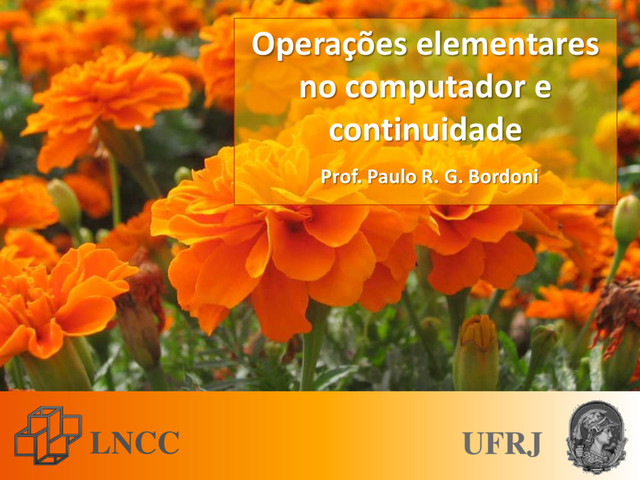 • Parênteses: como buscar informações na NumPy. • Obtendo informações sobre floats IEEE 754/2008 na NumPy. • O conjunto ℝ dos números reais constitui um corpo ordenado. • A Unidade de Aritmética e Lógica, ALU. • As operações elementares NÃO são fechadas no computador. • O remendo criado pelo IEEE 754/2008. • O axioma de existência do supremo e a continuidade do conjunto dos ℝ dos números reais. • Continuidade de funções reais, a valores reais. Este conjunto de transparências é dedicado ao estudo das operações elementares no computador e da continuidade. Eis um resumo do que veremos: