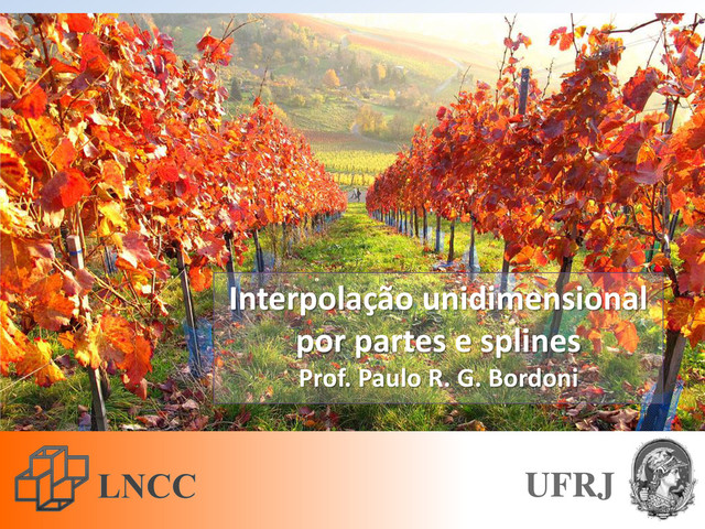 Iniciamos com o espaço das funções contínuas e lineares por partes e a base de funções chapéu (de bruxa). Depois analisamos as funções contínuas e quadráticas por partes, com sua base de funções chapéu coco (de Charlie Chaplin). Em seguida olhamos para interpolação de Hermite e usamos os métodos interp1d( ) e a classe PiecewisePolynomial da scipy.interpolate. Encerramos com splines interpoladores para funções reais a valores reais e curvas no plano.