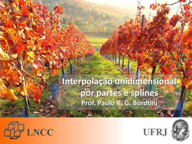 ] em vários subintervalos. 2. Em cada sub-intervalo usamos uma polinomial de grau baixo. Dividir para conquistar é um mantra da computação.