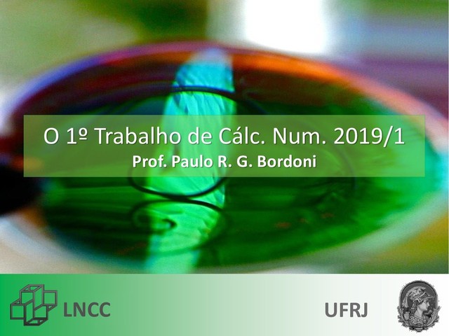 do dia 22/04, a próxima 2ª feira. Lembrem-se, o endereço do Mestre, é [email protected] 1. Cada exercício deverá ser enviado separadamente. 2. Na mensagem de encaminhamento , o “Assunto” deverá conter: 1. Trab. 1 de Cálc. Num. 2. Turma: EE1-9718 ou EPT-9720 3. O número do exercício EXEMPLO: T2 de Cálc. Num., EE1-9718, Exerc. 2 ATENÇÃO: Continua