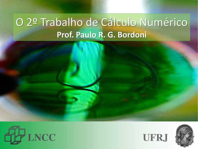 aplicações à engenharia • são teóricos • não devem ser feitos (são sobre Série de Taylor, próx. conteúdo) 2. Os exercícios onde o texto indica para utilizar o Maple devem ser feitos com Python, Numpy, Scipy, etc. 3. Todos os exercícios numéricos deverão ser feitos com Python, Numpy, Scipy, etc. 4. Os grupos G06, G07 e G08 da turma EB2/ENU passam a ser G05, G06 e G07, respectivamente. 5. O texto de cada questão pode ser acessado através do link abaixo. http://www.mediafire.com/folder/qjxlpc1jm326t/Segundo_Trabalho _Cálc._Numérico