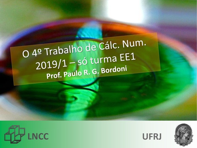 [email protected] 1. Cada item do trabalho poderá ser enviado separadamente. 2. Na mensagem de encaminhamento , o “Assunto” deverá conter: 1. Trab. 4 de Cálc. Num. 2. Turma: EE1-9718 ou EPT-9720. 3. O número do item encaminhado. EXEMPLO: T1 de Cálc. Num., EE1-9718, Item 2 ATENÇÃO: Continua