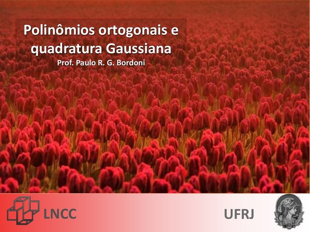de integração “gaussiana” apropriadas. Por exemplo para o intervalo 0, +∞ a escolha boa seriam as polinomiais de Laguerre, que formam um conjunto ortogonal completo em 2 (0, +∞).