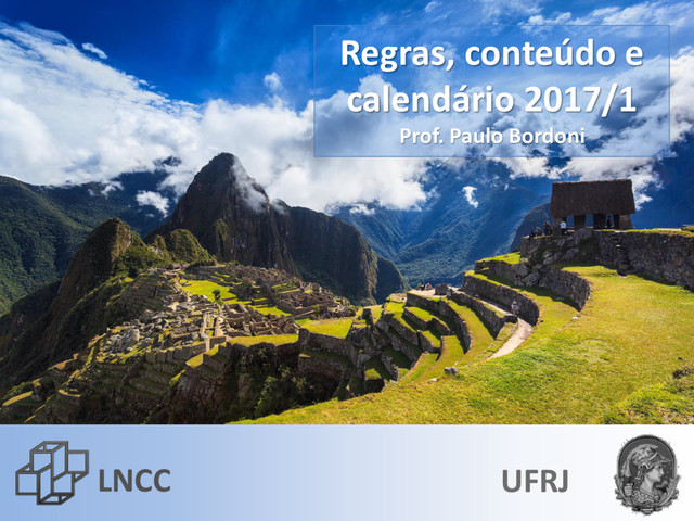 aula. Lembro que a lei da UFRJ impõe 75% de presença nas aulas; ao todo 45 h/a. Dito de outra forma: oito dias de faltas reprovam automaticamente e isso não é negociável.