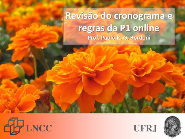 14:00 às 18:00 24/10 1º trabalho. Postagem às 21:00 h. Devolução até dia 30/10 às 21:00 h. 07/11 2º trabalho. Postagem às 21:00 h. Devolução até dia 13/11 às 21:00 h. 19/11 3º trabalho. Postagem às 21:00 h. Devolução até dia 25/11 às 21:00 h. 10/12 (3ª feira) 2ª prova online, das 14:00 às 18:00. 17/12 Exame final. Se 3.0 ≤ é < 7.0 então exame final. Veja detalhes mais adiante. Refaça na sua agenda.