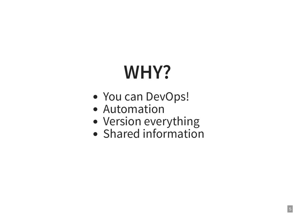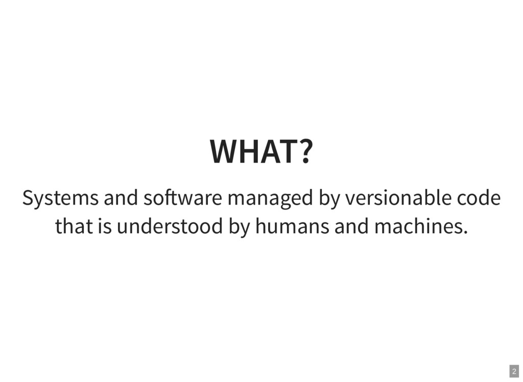 A simple deck for a presentation on the merits of keeping everything as code from a systems engineering perspective.