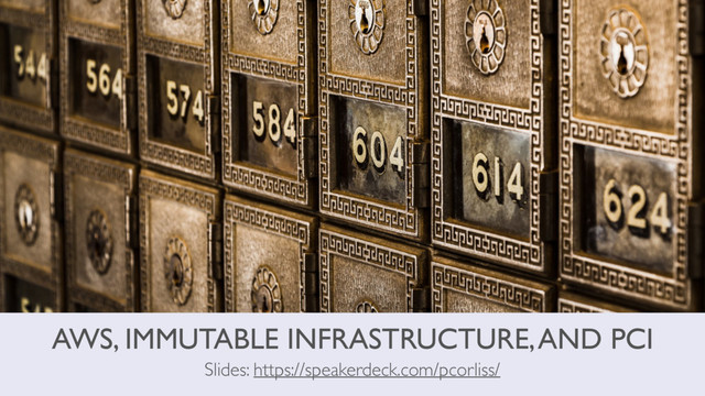 AWS, IMMUTABLE INFRASTRUCTURE, AND PCI Slides: https://speakerdeck.com/pcorliss/