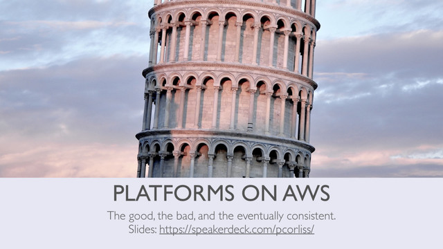 Amazon Web Services (AWS) is widely used by technology companies to enable elastic workloads and store large amounts of data. When we started building on AWS, we expected to have issues but didn’t fully appreciate that operating in AWS at scale would mean new challenges in error handling and building for failure. Join us to hear all about our experience with the perils and pitfalls of starting and stopping hundreds of instances every day. We’ll pass on our hard-won knowledge so that you can make your own AWS deployment a little more consistent.
