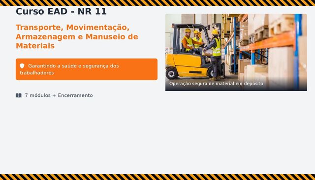 11 foi criada pela Portaria nº 3.214, de 8 de junho de 1978, para regulamentar os artigos 182 e 183 da Consolidação das Leis do Trabalho (CLT). Estabelece medidas de segurança para prevenir acidentes no transporte, movimentação, armazenagem e manuseio de materiais. Importância O objetivo principal da norma é estabelecer medidas de segurança para prevenir acidentes e garantir um ambiente de trabalho seguro. Sem regras claras, o risco de acidentes graves como tombamentos, quedas de materiais e lesões por esforço repetitivo seria extremamente elevado. Principais Atualizações Qual é o objetivo principal da NR 11? a) Aumentar a produtividade b) Garantir a saúde e segurança dos trabalhadores c) Reduzir custos da empresa d) Substituir equipamentos antigos Portaria SIT nº 56/2003 Introduziu o Anexo I, com regulamento técnico específico para a movimentação, armazenagem e manuseio de chapas de mármore, granito e outras rochas. Portaria SIT nº 82/2004 Alterou as regras para o empilhamento de sacos em armazéns, limitando a altura máxima das pilhas com base na resistência do piso e na estabilidade da carga. Portaria MTPS nº 505/2016 Mais recente revisão relevante, alterando o Anexo I para estabelecer exigências mais rigorosas para o setor de rochas ornamentais. Detalhou novas medidas sobre inspeções, qualificação profissional, proteção de áreas e equipamentos específicos.