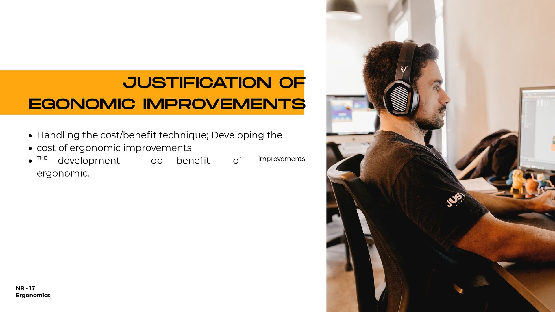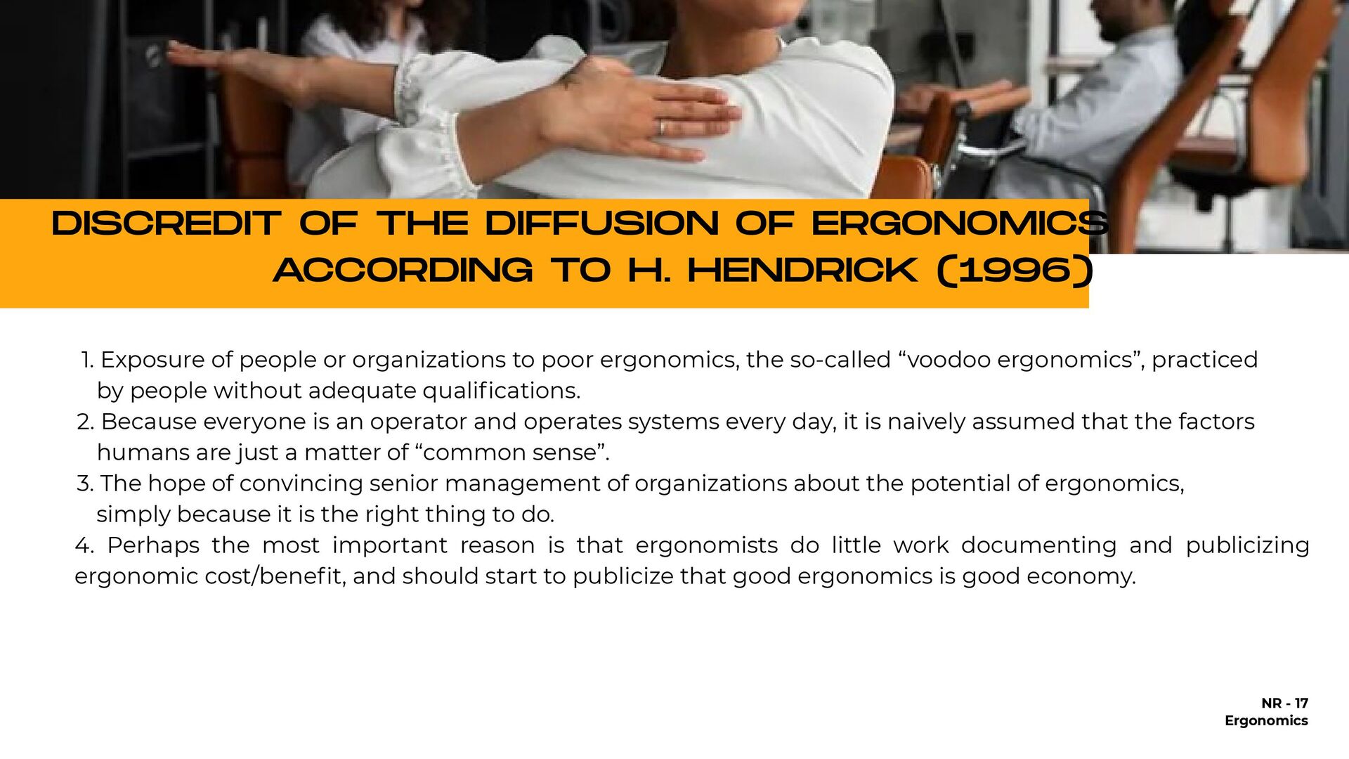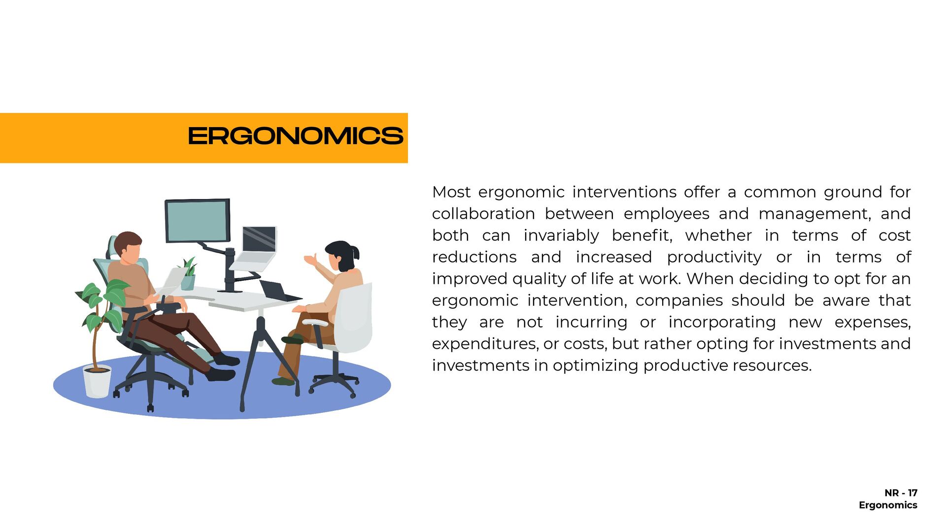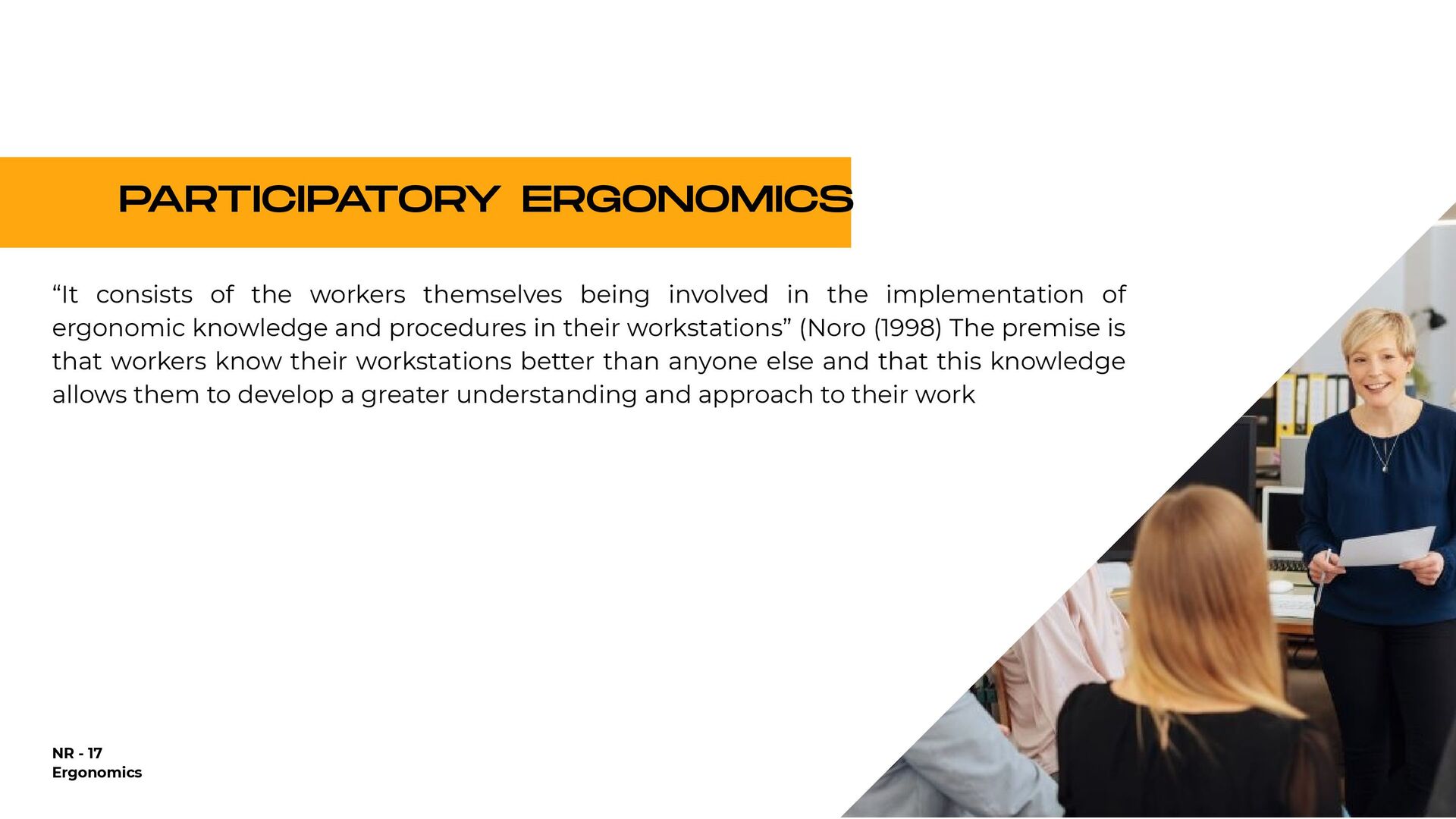 holding heavy objects for a long time Falls Injuries resulting from awkward postures and slips, loss of balance without falling Falls from a lower level (ladder or over railings) Objects falling on the worker Repetitive movements Accidents on the way to work Injuries due to shocks, collisions with heavy equipment Crushing by machinery or equipment Contact with extreme temperatures that result in thermal shock and burns (ice, heat) All causes of accidents 25,57% 1.146% 935% 933% 894% 610% 546% 492% 418% 92% 100,00% % OF DIRECT COSTS FOR WORKERS' COMPENSATION IN 1998 $9.8 billion $4.4 billion $3.6 billion $3.6 billion $3.4 billion $2.3 billion $2.1 billion $1.9 billion $1.6 billion $3.0 billion $38.7 billion NATIONAL DIRECT COST ESTIMATE FOR WORKERS' COMPENSATION DIRECT COSTS GENERATED BY THE 10 MAIN CAUSES OF OCCUPATIONAL ACCIDENTS AND ILLNESSES IN THE USA - 1998