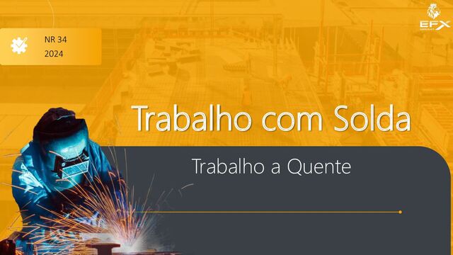 dedicada ao trabalho em estaleiros. Os trabalhos a quente e suas medidas de segurança são tratados no item 34.5. Parte do que vimos e do que está nos itens a seguir baseia-se nessa NR. Qualquer profissional do trabalho a quente, seja ele observador ou soldador e operador de máquina, precisa ter alguns conteúdos básicos sendo tratados no seu curso de admissão ou treinamento periódico.