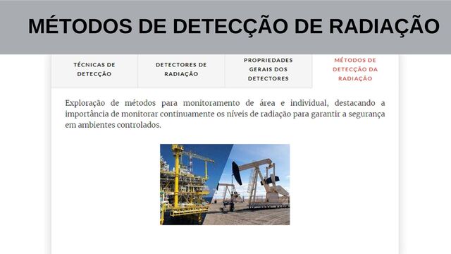 exposição às radiações, onde se recomenda minimizar o tempo de exposição, maximizar a distância da fonte e utilizar blindagem adequada. Importância de sinalizar áreas com riscos de radiação para garantir que todos estejam cientes dos perigos e das medidas de segurança necessárias. EQUIPAMENTO DE PROTEÇÃO INDIVIDUAL (EPI) Necessidade de uso de EPIs adequados para proteger os trabalhadores das radiações. MONITORAÇÃO Uso de dispositivos de monitoramento para garantir que os níveis de radiação se mantenham dentro dos limites seguros.