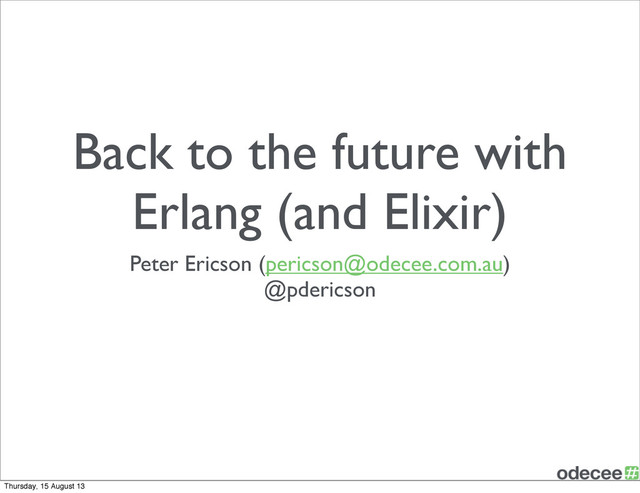 Erlang semantics • It compiles directly to Erlang (BEAM) bytecode • Erlang and Elixir modules are interchangable with zero overhead and translation cost Thursday, 15 August 13