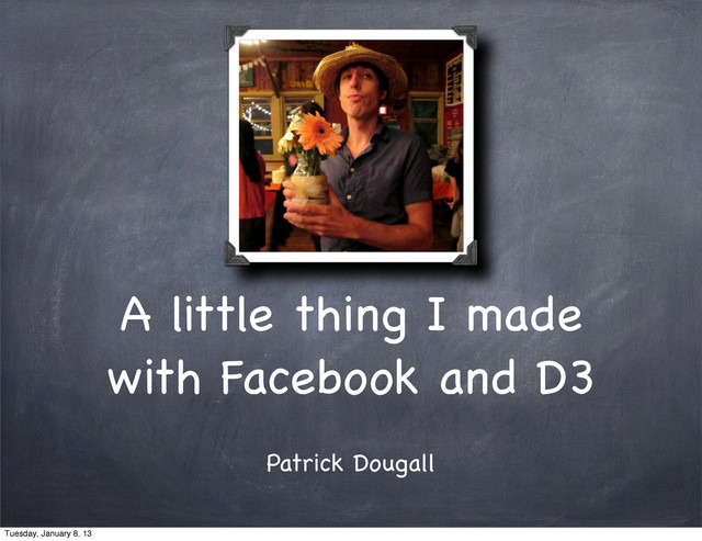 an MS in Neuroscience last December. I learned how to teach myself hard stuff Similar conceptual thinking Looking for employment! [email protected] https:/ /github.com/pdougall1 About me :) Tuesday, January 8, 13