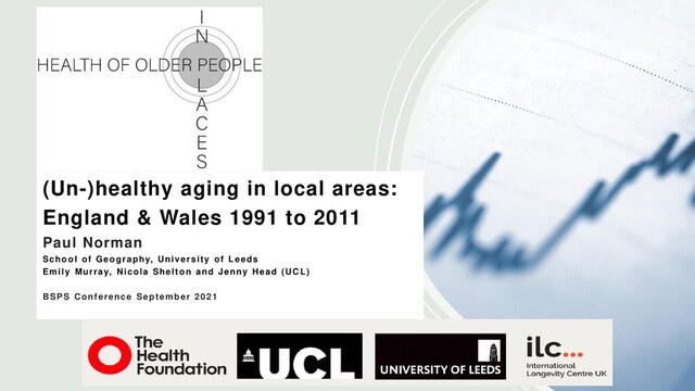 Since there are ecological correlations between health of older people in places and later life work exit, we explore, What kinds of places do people have better / worse health outcomes during ages 50 to 74?