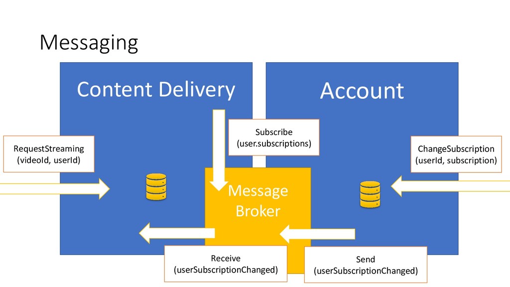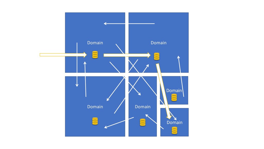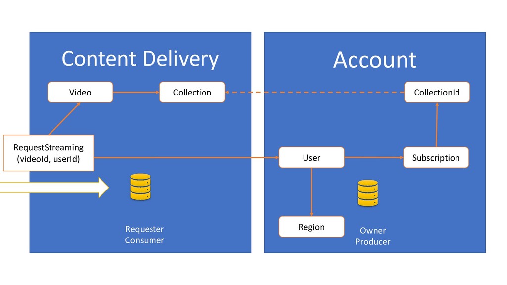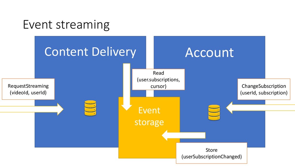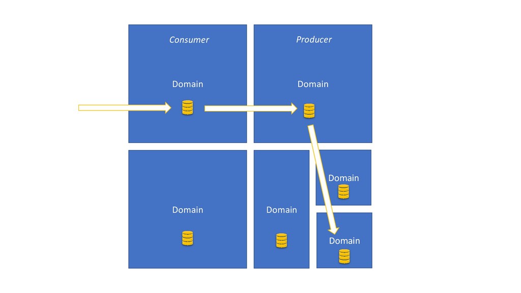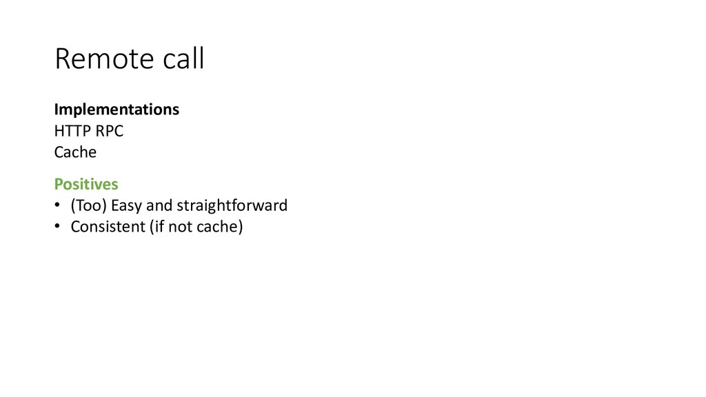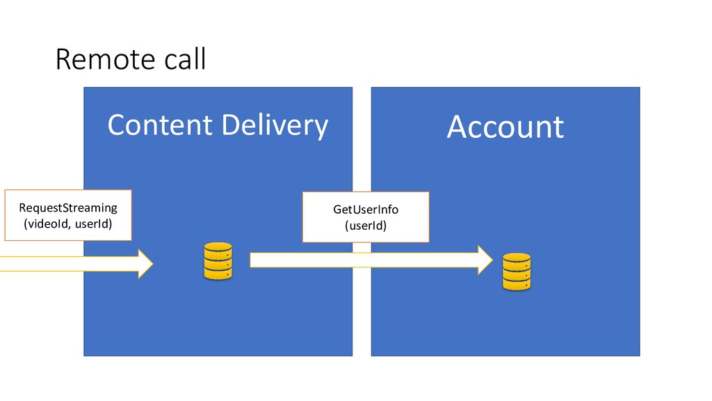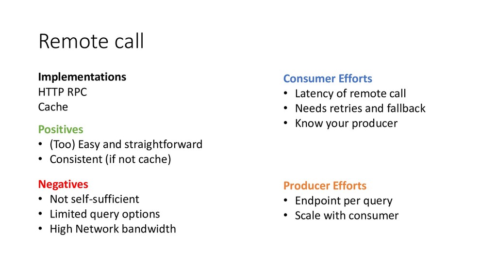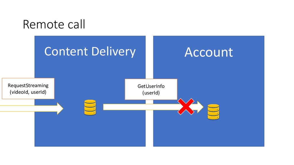 Separation of system to discrete services with their own storage brings challenges when data owned by remote service are needed to process a request.