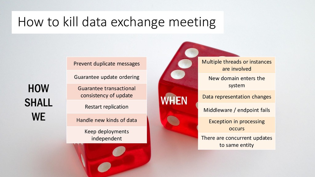 The talk shows several common approaches to achieve sharing of data, and the effort needed to guarantee consistency of the data.