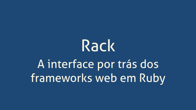 = {'Content-Type' => 'text/html'} body = ['<p>Hello Rubyconf!</p>’] [status, headers, body] end end { "HTTP_ACCEPT" => “text/html, ...", "HTTP_USER_AGENT" => "Mozilla/5.0...", "REQUEST_PATH" => "/posts", "REQUEST_METHOD" => "GET", "rack.version" => [1, 3], "rack.request.query_string" => "", "rack.request.query_hash" => {}, "rack.request.cookie_hash" => {} ... }