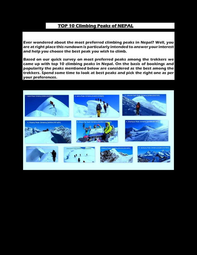 most preferred climbing peaks in Nepal? Well, you are at right place this rundown is particularly intended to answer your interest and help you choose the best peak you wish to climb. Based on our quick survey on most preferred peaks among the trekkers we came up with top 10 climbing peaks in Nepal. On the basis of bookings and popularity the peaks mentioned below are considered as the best among the trekkers. Spend some time to look at best peaks and pick the right one as per your preferences.