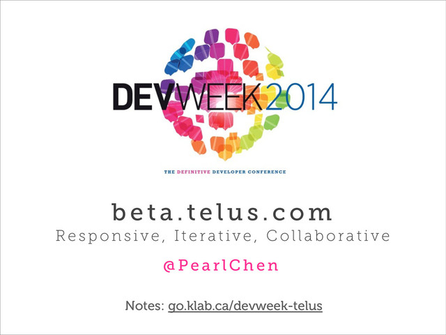 In early 2013, a skunkworks team of designers, developers and strategists came together to rethink the website of one of Canada's largest telcos. Beta.telus.com was the first project to come out of the TELUS Digital Labs, and there were many lessons learned along the way, such as how to implement Lean methodology in an Enterprise-loving company, how to get designers and developers rapid prototyping together, and more. What worked and what needed re-work in this large mobile-first, responsive redesign? Get a behind the scenes look into some of the processes, tools and technologies used to get beta.telus.com off the ground in only four months, with updates almost every week.