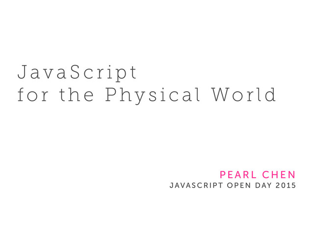 If you know enough JavaScript to be dangerous, you (yes, you!) can interact with the physical world via sensors. lights, and motors. Not only do you not need an electrical engineering degree to start hacking with hardware, you don't even need to learn a new language! In this session, I'll go over a few microcontroller boards that play well with JavaScript, show a demo or two, and share resources on how you can get started with hardware.