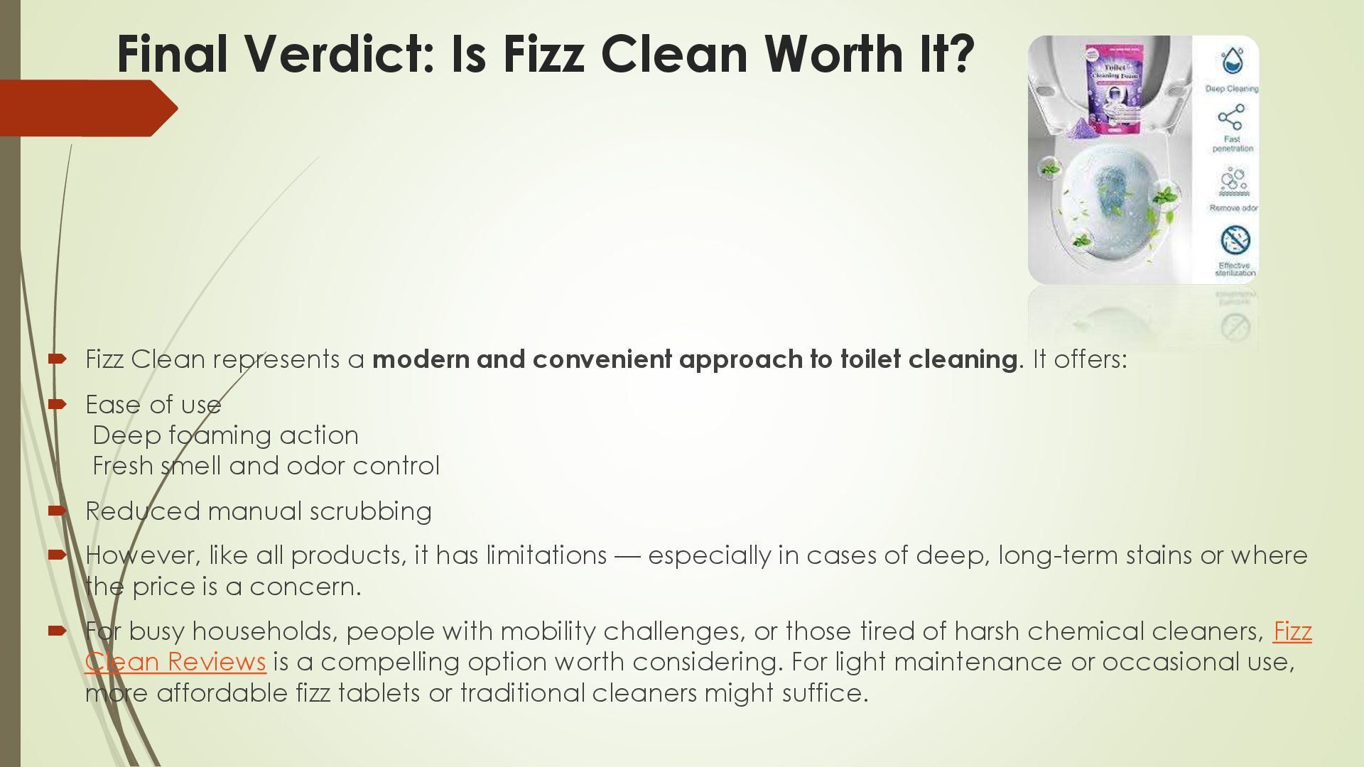 Cleaning toilets is one of the most disliked household chores. Most of us have been there — knees aching from scrubbing, choking on harsh chemical fumes, and battling stubborn mineral stains that refuse to budge. In response to that universal frustration, manufacturers have created innovative cleaning solutions that promise deep cleaning with minimal effort. One of the most talked-about products in this space is the Fizz Clean toilet cleaner — a foaming fizz-action cleaner designed to replace traditional scrubbing with easy pour-and-flush convenience.