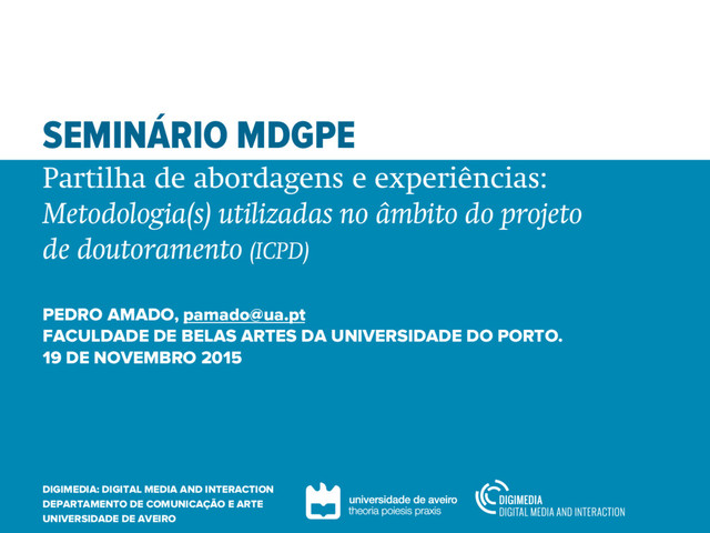 Partilha de abordagens e experiências: Metodologia(s) utilizadas no âmbito do projeto de doutoramento (ICPD) de Pedro Amado, [email protected].