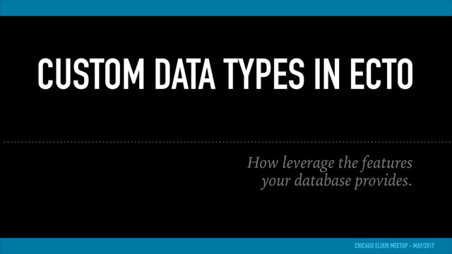 In this talk I will cover how to create a data type in Ecto that will allow the application persist and retrieve ranges, a Postgres specific data type.