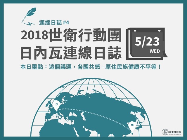 2018世衛行動團 日內瓦連線日誌 連線日誌 #4 本日重點:這個議題,各國共感 – 原住民族健康不平等! 5/23 WED