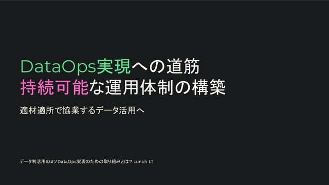 DataOps実現への道筋 持続可能な運用体制の構築 適材適所で協業するデータ活用へ データ利活用のミソ DataOps実現のための取り組みとは? Lunch LT