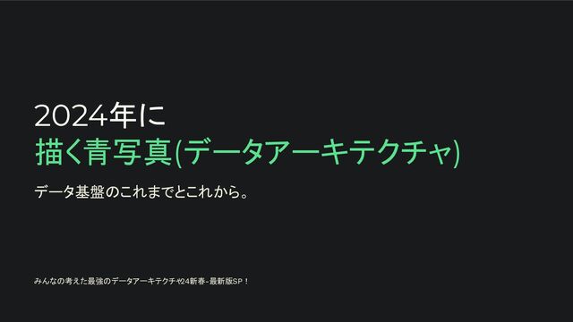2024年に 描く青写真(データアーキテクチャ) データ基盤のこれまでとこれから。 みんなの考えた最強のデータアーキテクチャ '24新春-最新版SP!