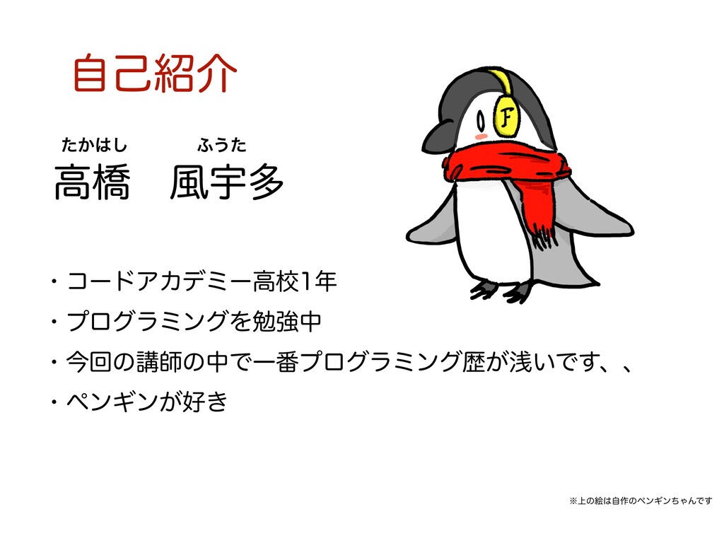 ࣗݾհ ߴڮɹ෩Ӊଟ ͔ͨ͠ɹɹɹɹ;͏ͨ ɾίʔυΞΧσϛʔߴߍ ɾϓϩάϥϛϯάΛษڧத ɾࠓճͷߨࢣͷதͰҰ൪ϓϩάϥϛϯάྺ͕ઙ͍Ͱ͢ɺɺ ɾϖϯΪϯ͕͖ ˞্ͷֆࣗ࡞ͷϖϯΪϯͪΌΜͰ͢