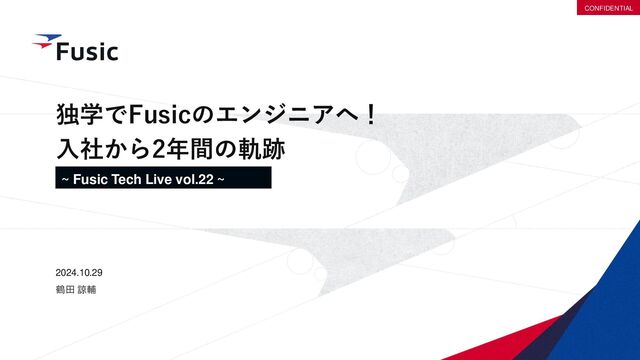 ©Fusic Co., Ltd. 0 CONFIDENTIAL 独学でFusicのエンジニアへ! 入社から2年間の軌跡 ~サブタイトル~ 2024.10.29 鶴田