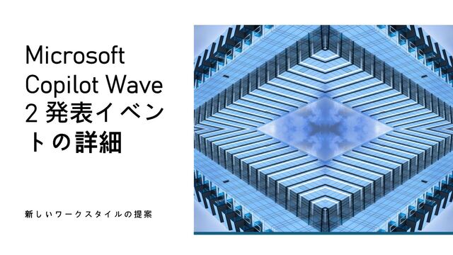 2は、新しいワークスタイ ルの可能性を提供します。これにより、 作業プロセスがより柔軟かつ効率的にな ります。 今後の改善 Copilot Wave 2の改善は今後も続けられ ます。より効率的な作業とより協力的な 作業環境を目指し、Copilot Wave 2は改 善されていく予定です。