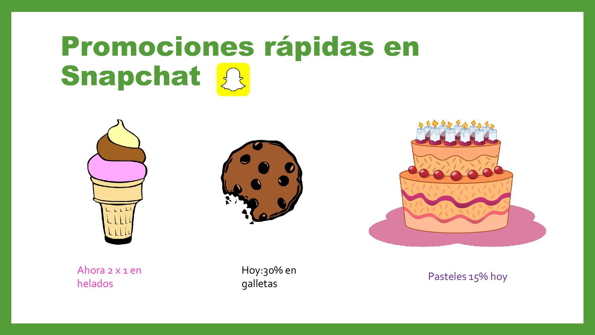 Promociones rápidas en Snapchat Ahora 2 x 1 en helados